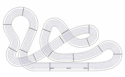 Holzbahn MDF - ca.45m - 5 Spuren. Natürlich von Plazidus mit bewährter Bepfezeitnahme. Rund und satt und schnell istīs geworden!